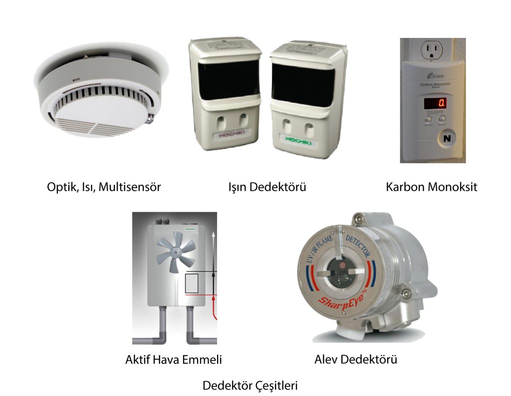 Duman, Isı, Gaz, Alev, diğer yanma reaksiyonu sonuçlarını izlemek için üretilen cihazlardır. Genelde yangın paneline ikaz bu ünitelerden gelir. Algılama noktaları genelde elektronik olduğu için dış ortam tozlar gibi etkenlerden etkilenir. Sistemin çalışması için bunlarının bakımının bakım süreleri dikkate alınarak yapılması lazımdır.
