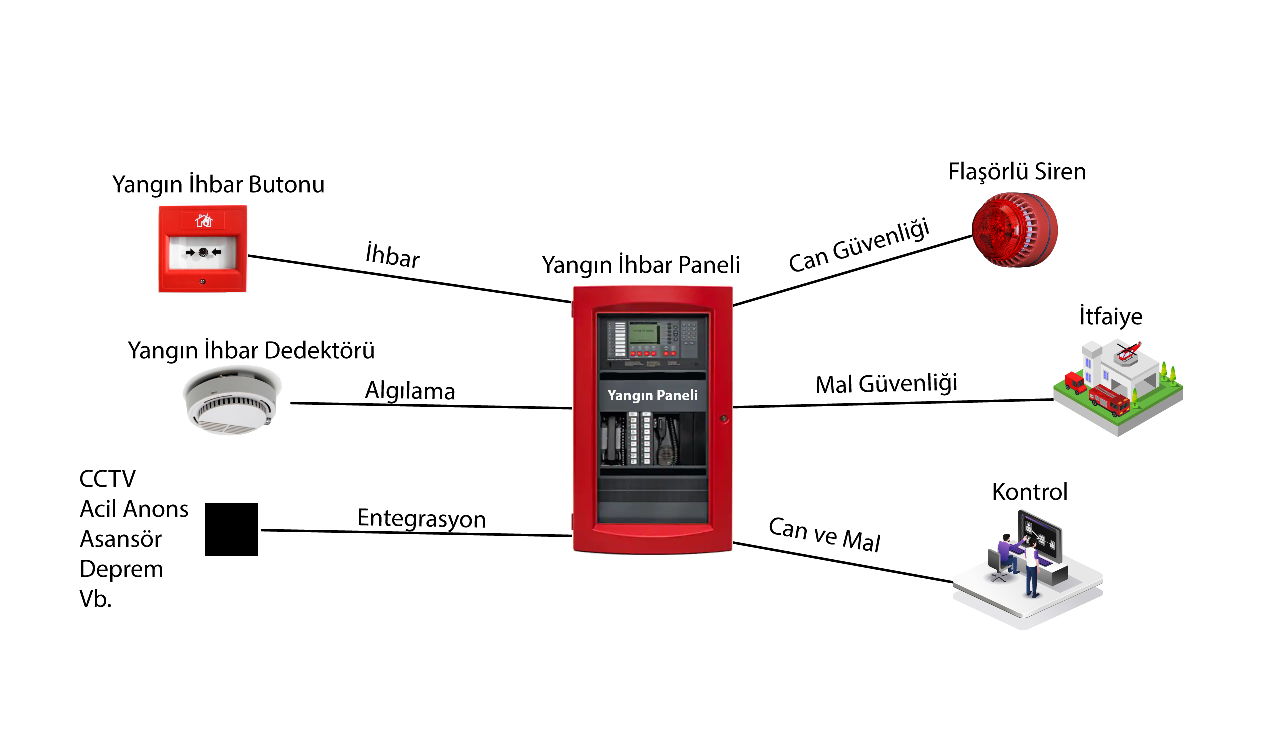 Yangın ihbar sisteminin en önemli ekipmanlarından biridir. Yangın anında butona basıldığında panele bilgi iletir ve yangın senaryosunu çalıştırır.